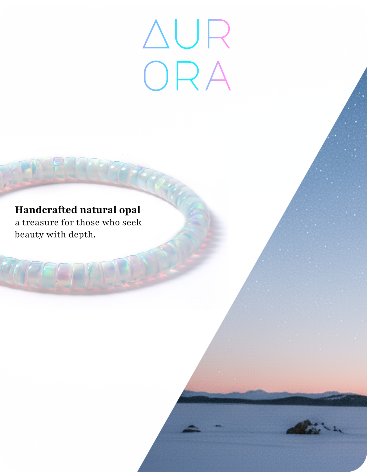 The first release of our Mudi.LUXE line — a collection where artistry meets intention. Natural Opal Aurora bracelet is handcrafted, and every opal bead is carefully chosen by our designers to capture light, calm, and inner balance.